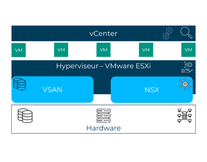 - NSX : Plateforme de virtualisation de réseau qui permet de créer, gérer et sécuriser les réseaux virtuels